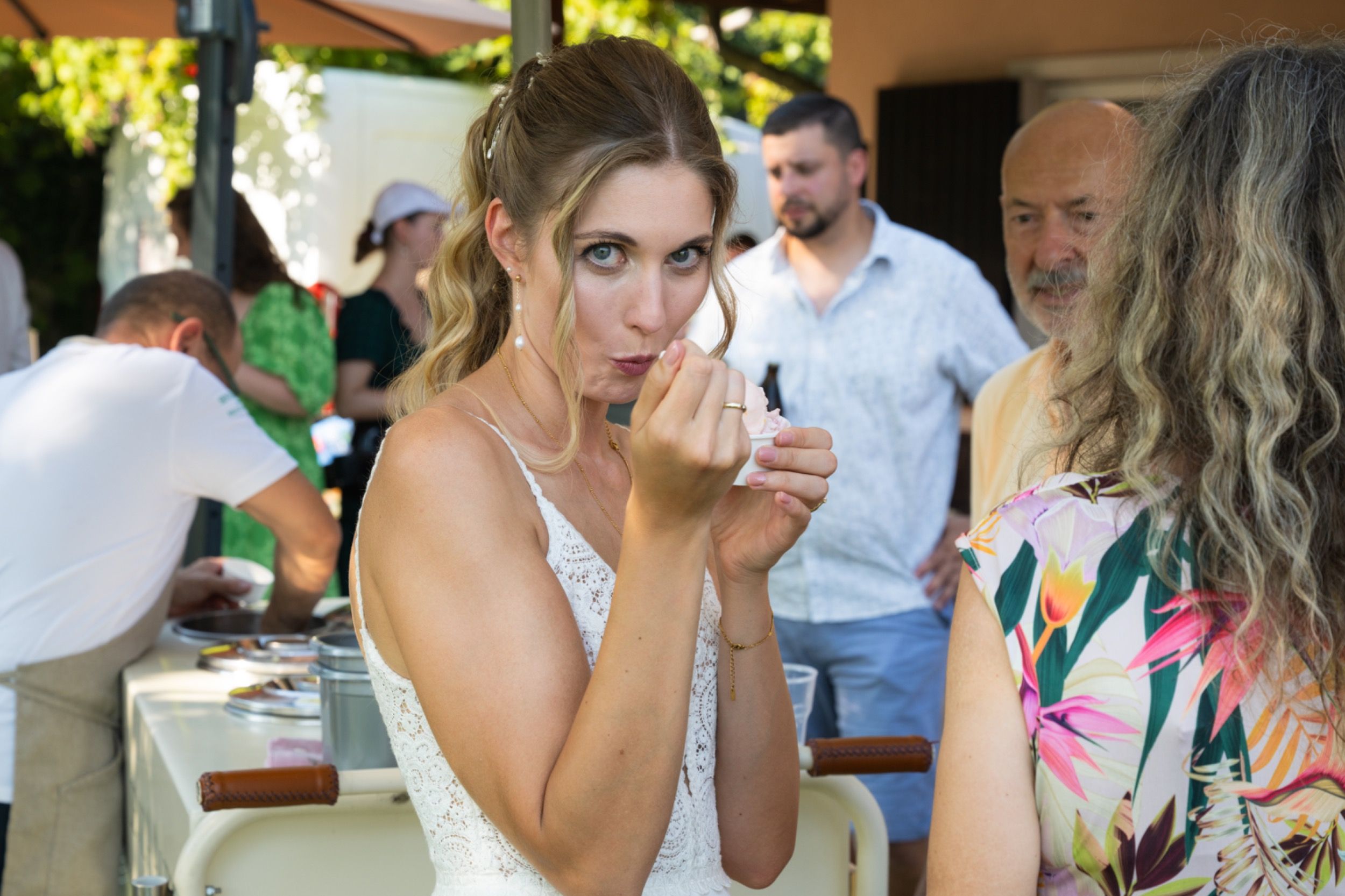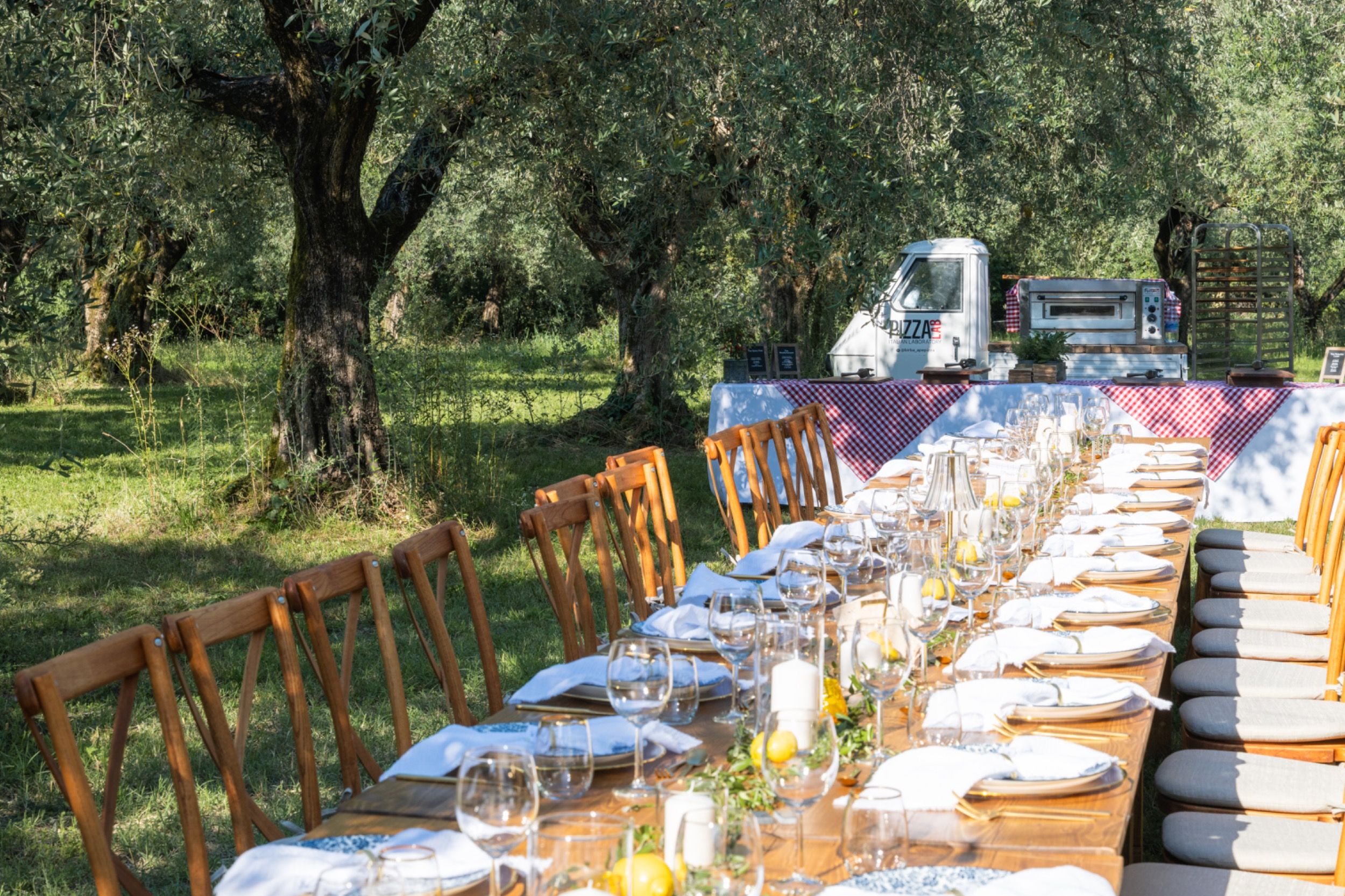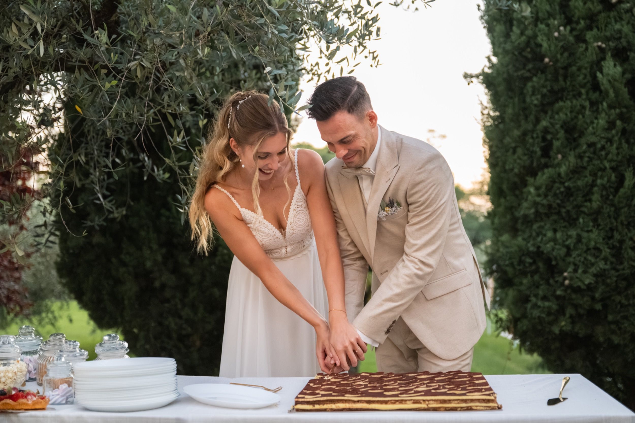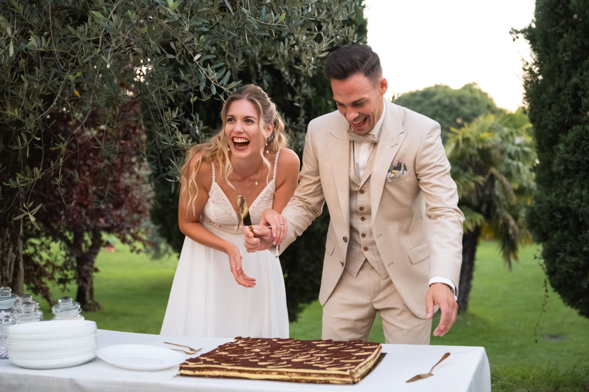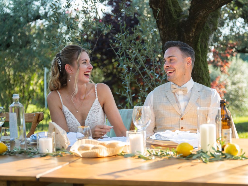 Die Feier war geprägt von italienischem Flair und ausgelassener Stimmung. Natürlich durften dabei weder ein Pizzabuffet noch die Hochzeitstorte in Form eines Tiramisu fehlen.